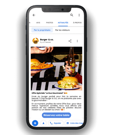 Posts Google : On rédige et on publie pour toi tes actualités ou tes offres spéciales (promo, nouveau service, etc.).